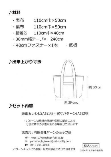 【ヤーンショップ藤オリジナルパターン】ファスナー付きトートバッグ
