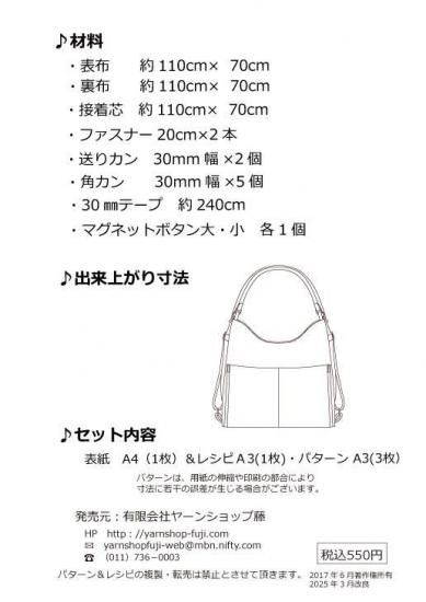 【ヤーンショップ藤オリジナルパターン】ワンタッチでリュック