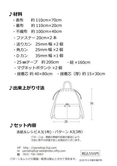 【ヤーンショップ藤オリジナルパターン】巾着型リュック